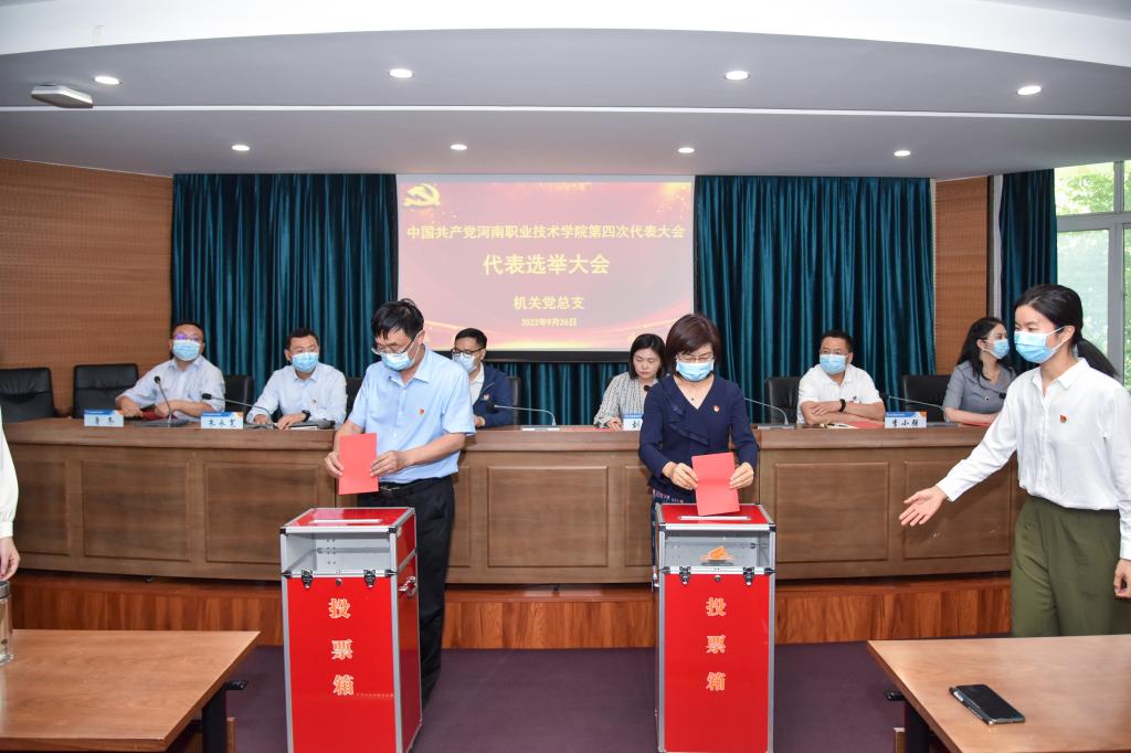 9月26日下午,机关党总支在行政楼238会议室召开全体党员大会,选举出席中国共产党河南职业技术学院第四次代表大会的代表。机关党总支115名党员参加了会议。党委书记李桂贞、校长梅乐堂、副校长任枫轩以普通党员身份参与了选举。会议由机关党总支副书记刘竹主持。