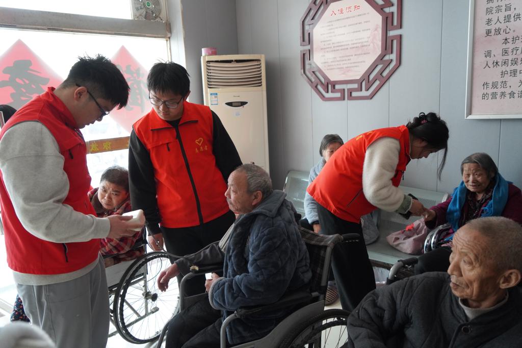 在淇县桥盟街道朝阳社区“颐兴老年护理中心”,杨华代表学校将大米、面粉、食用油和卫生用品等物资捐赠给护理中心。志愿者们与中心老人亲切交流,耐心聆听他们的过往经历,详细询问他们的生活状况和身体健康情况,让老人们感受到了久违的陪伴和温暖。志愿者们还耐心细致地为老人们量血压、修剪指甲、整理胡须、梳头、按摩、打扫房间,为老人们营造一个更加清新、干净、温馨的生活环境,让老人们感受到了家的温暖和关爱,也让他们重新找回了生活的尊严和价值。整个活动过程中,志愿者们始终保持着微笑和耐心,他们用真诚和关爱赢得了老人们的信任和感激,让平日里安静的敬老院充满了欢声笑语,到处洋溢着温馨祥和的氛围。
