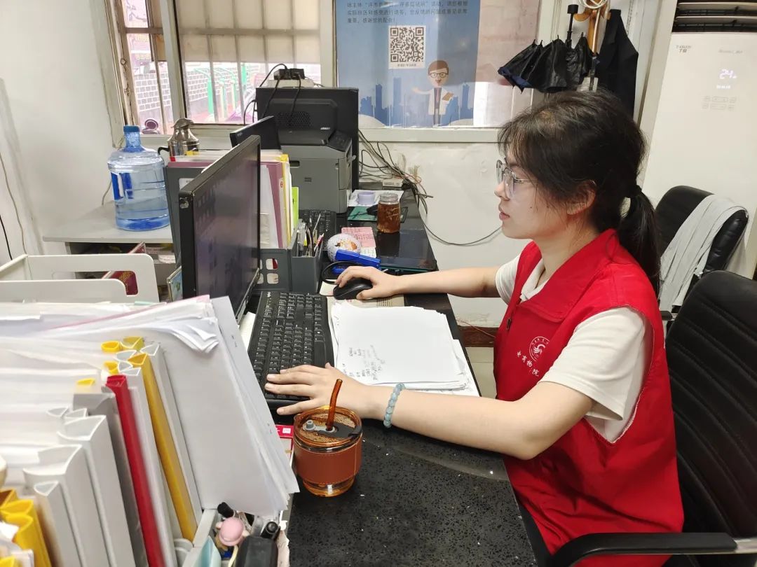 杨晶晶,商英231班学生,暑假期间,积极参加河南省济源市2024年⼤学⽣暑期“返家乡”社会实践活动,在北海办事处综合执法⼤队进⾏志愿服务。在岗期间,她承担防汛预警救灾、检查各单位消防安全管理、⻝品安全督导等⼯作,切身体会到了基层领导全⼼全意为⼈⺠服务的⼯作态度与热情,更看到了⼈⺠对基层、社会、国家充满希望。