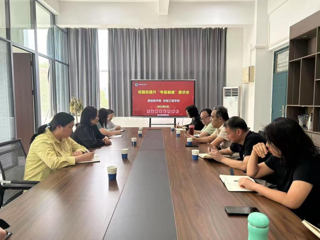 5月9日下午,学校基础教学部副主任王艳红带领数理、英语、文史和劳动教研室主任组成交流团队赴校控制工程学院开展双融双提升“专基融通”交流研讨座谈会。
