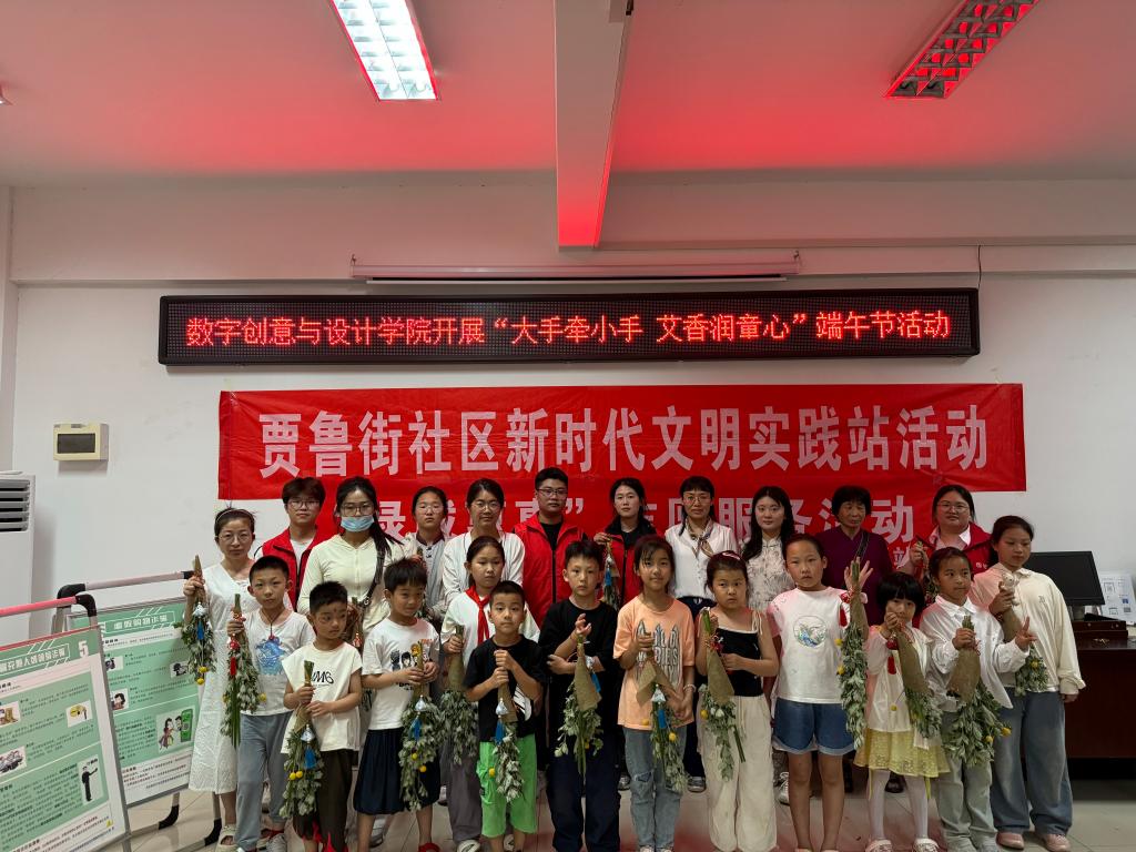 5月30日下午,学校数字创意与设计学院“四点课堂”美育志愿服务活动第六期——“大手拉小手 艾香润童心”端午主题活动在贾鲁街社区活动中心温暖举行。