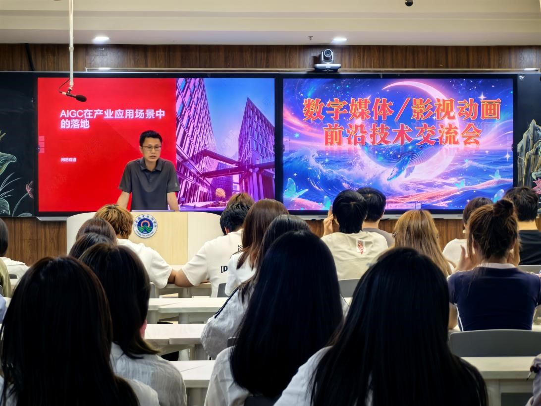 宣讲会上,李明以“AIGC在产业应用场景中的落地”为题,为同学们带来了一场兼具前沿性与实用性的分享。他深入剖析了人工智能生成内容(AIGC)技术在影视动画特效制作、游戏内容开发、数字营销创意、虚拟人交互等领域的革新应用与巨大潜力。通过展示网易有道及其生态伙伴在AIGC赋能下的实际项目案例,他生动描绘了技术迭代如何重塑行业格局、提升生产效率,并强调市场对熟练掌握数字媒体技术、兼具创意能力与AIGC工具应用素养的复合型人才的旺盛需求。这不仅为在校生指明了学习方向,也为毕业生把握行业脉搏、明晰职业定位提供了重要参考。李明在分享技术前沿的同时,还现场推介了网易生态合作企业的多个适配岗位,为即将步入职场的毕业生搭建起精准的就业桥梁,打通了人才输送的“最后一公里”。