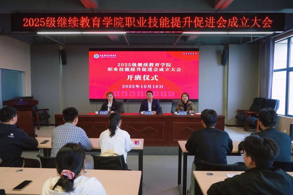10月16日下午,学校2025级职业技能提升促进会成立大会在合鼎楼719室召开。继续教育学院院长梁保然、副院长黄菲,以及学院相关指导老师和促进会全体成员参加了会议。