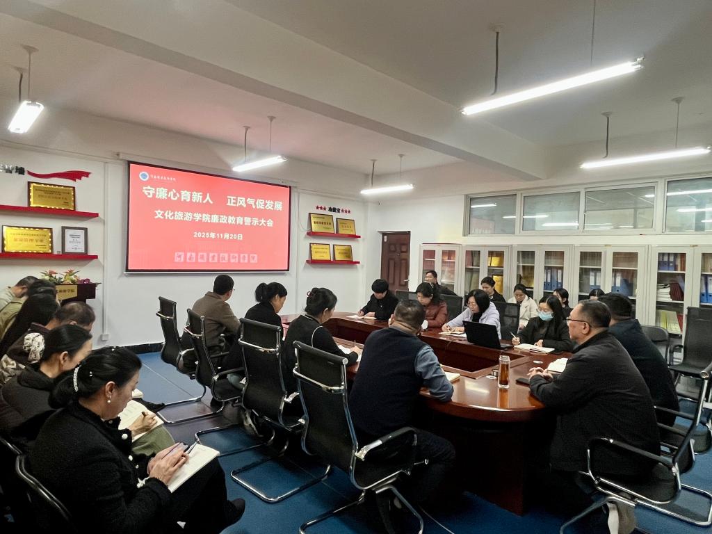 11月20日下午,学校文化旅游学院组织召开廉政教育警示大会,持续巩固深化党纪学习教育成果,进一步严明纪律规矩,营造风清气正的育人环境。会议由学院党总支书记苏威主持,全体教职工参会。