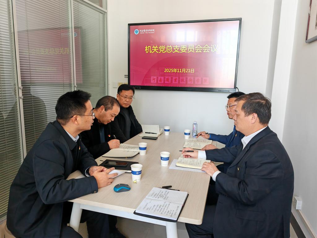 11月21日上午,学校机关党总支召开委员会会议,集中学习《习近平法治思想学习纲要》中关于全面依法治国的重要论述,学习传达党的二十届四中全会精神,研究贯彻落实意见。