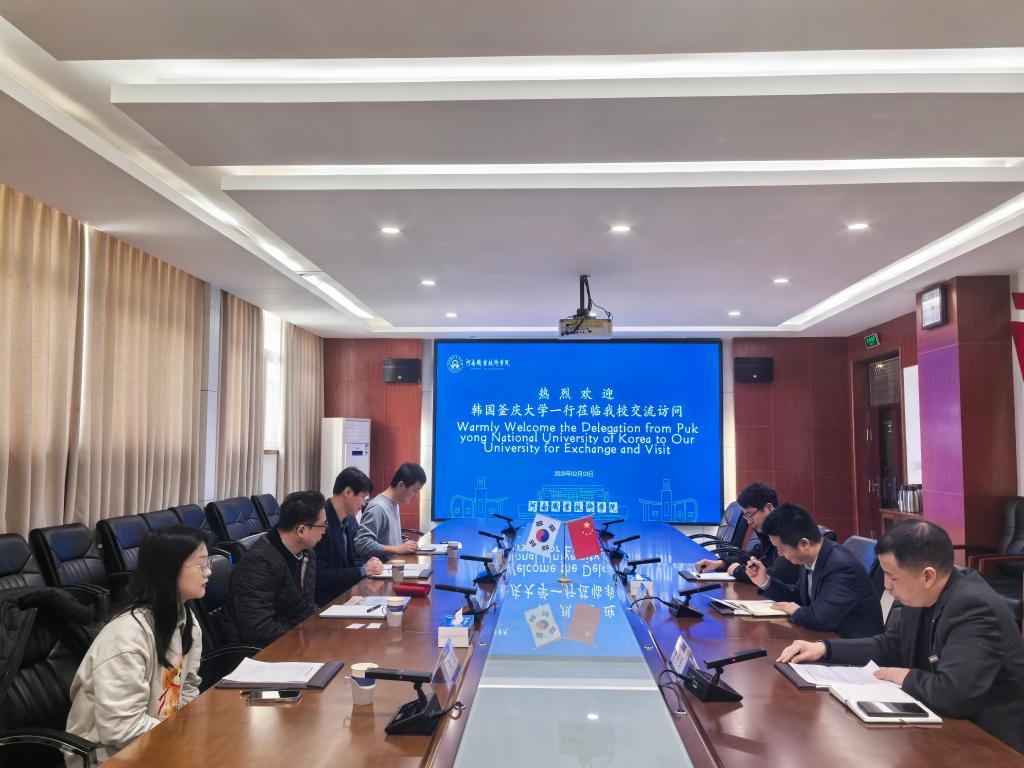 徐在喆对学校的热情接待表示感谢。他介绍了韩国国立釜庆大学的基本情况,并重点讲解了学科专业特色、国际合作策略和合作招生愿景,期待双方继续保持友好交流,扩大合作领域,为两校师生交流作出新的贡献。