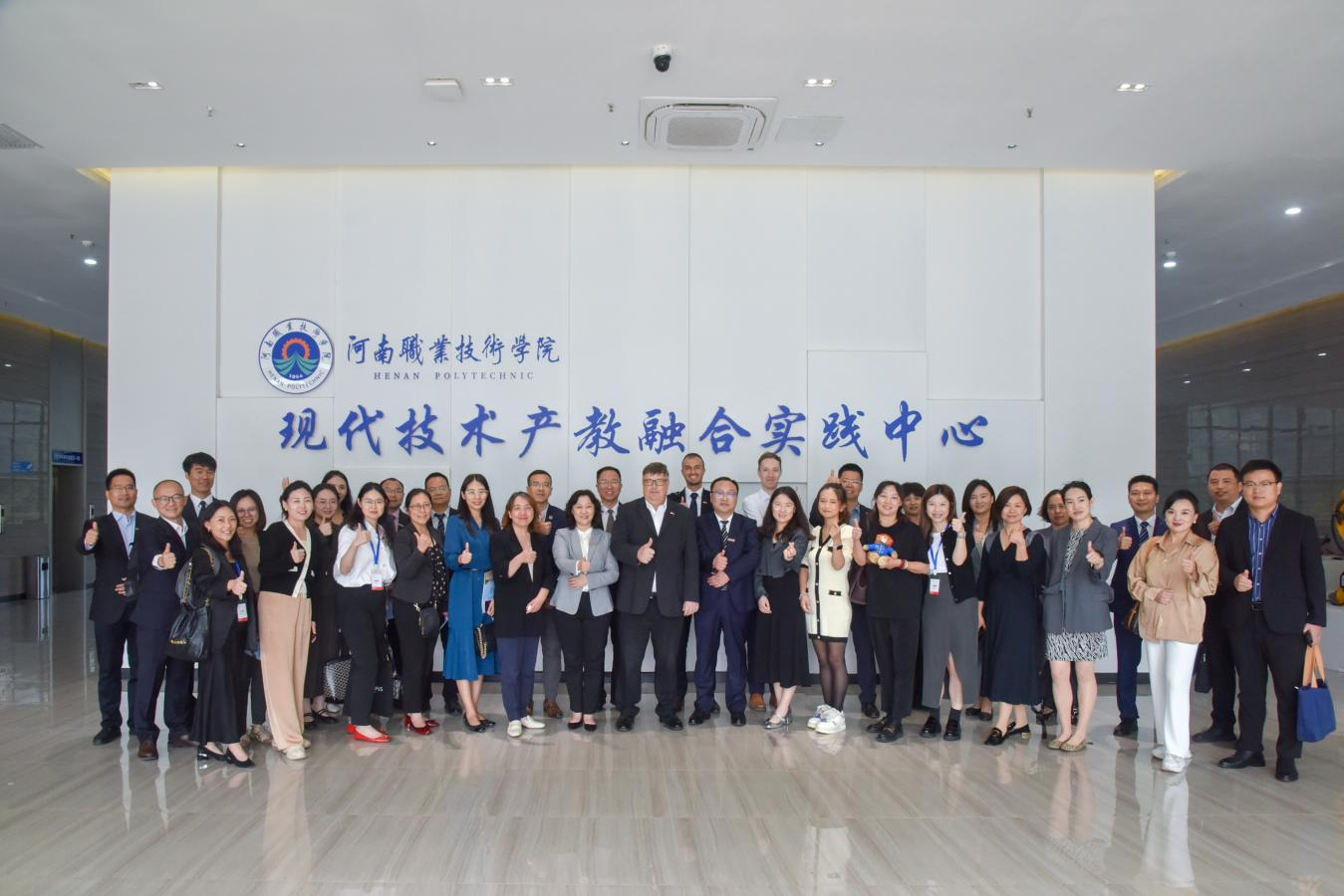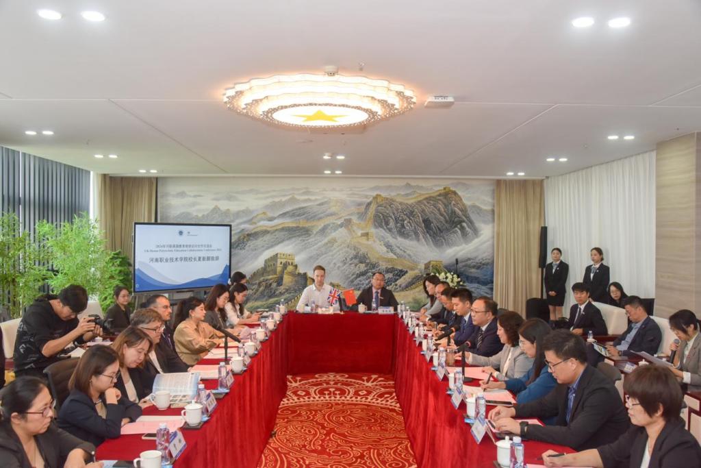 夏新颜在致辞中代表全校2万余名师生对远道而来的英国教育使团表示热烈的欢迎,简要介绍了河南职院的基本情况。她强调,在河南省委外办、河南省教育厅的指导帮助下,学校始终坚持国际化开放办学,将国际化教育理念贯穿于职业教育全过程,与多所海外知名院校开展项目合作,建立中外合作办学机构,构建了中外合作协同育人机制,人才培养国际化水平得到明显提高,学校的国际影响力和认可度得到显著提升。她指出,英国作为世界领先的教育资源供给国,在教育和技能领域享有杰出的盛誉,英国职业教育因其成熟的资格框架体系在国际上得到了广泛认可,英国教育机构历来都是学校长期的重要合作伙伴。她希望,通过此次交流,进一步增进双方的了解和友谊,聚焦提质增效,强强联合,在合作办学、联合培养、科研合作、人文交流等领域产出更多更丰硕的优质成果。