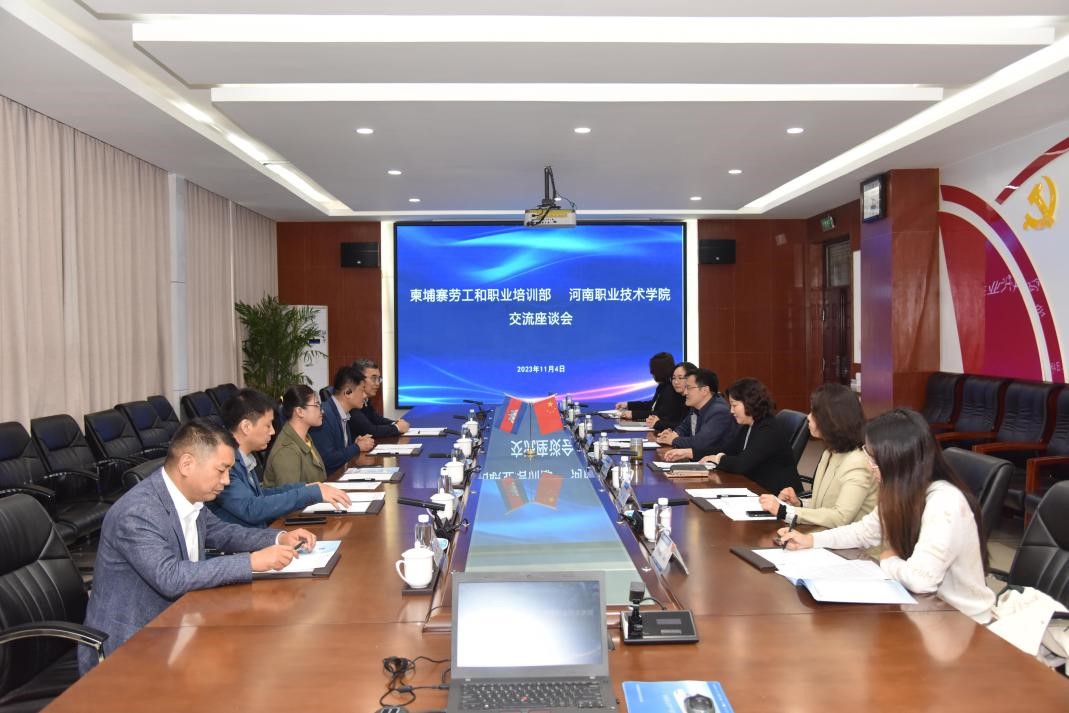 11月4日下午,柬埔寨劳工和职业培训部副国务秘书西姆·希斯罗特一行到访河职,就拟开展合作事宜进行交流。校长夏新颜、副校长任枫轩出席座谈会。国际合作交流处、音乐学院和继续教育与培训中心负责人参会,任枫轩主持会议。