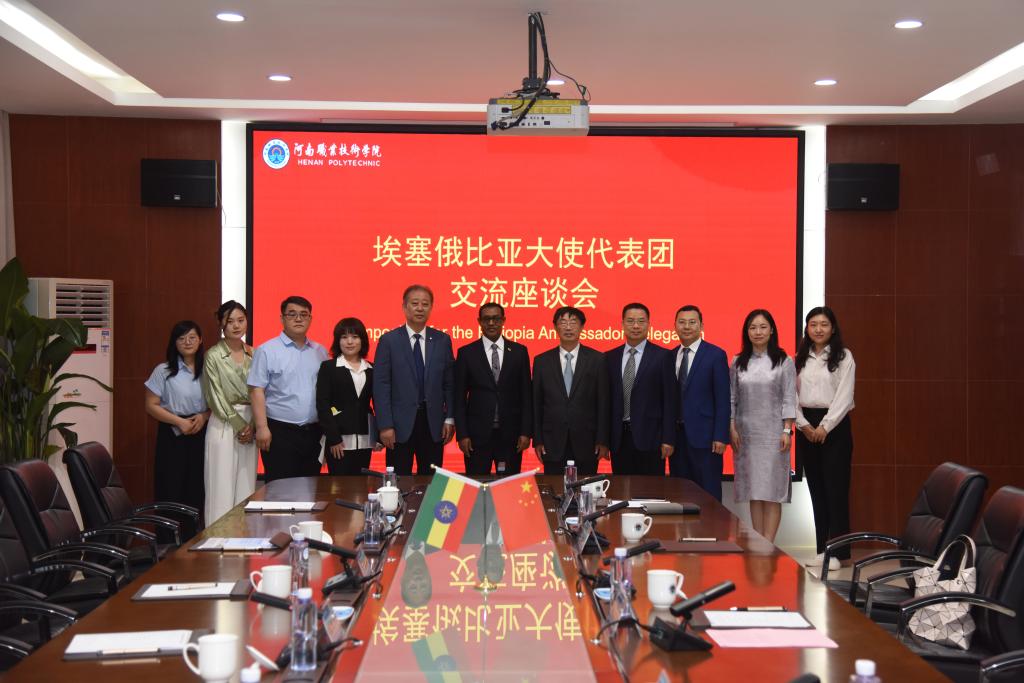 6月9日上午,埃塞俄比亚驻华大使塔费拉·德贝·伊马姆一行到访河职,并就拟开展合作事宜进行交流。校长梅乐堂、副校长王皓出席座谈会。国际合作交流处、人事处、教务处负责人参会,王皓主持会议。