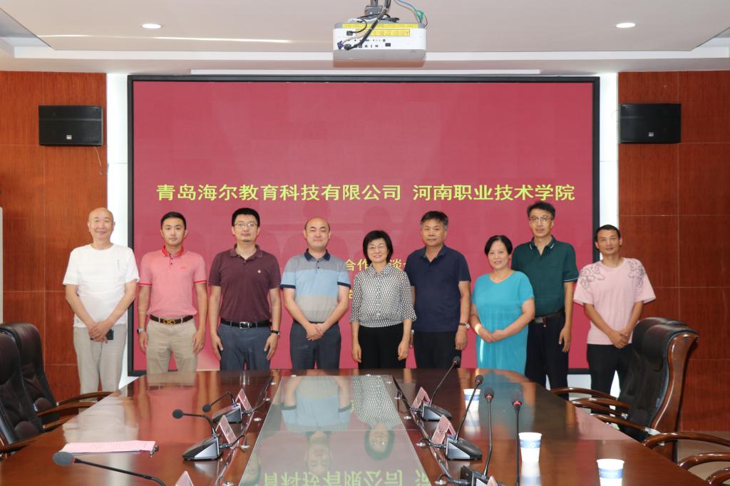 李桂贞表示,学校与海尔集团在校企合作源远流长,有着良好的合作基础和长期稳固的合作关系,学校一直十分重视与海尔集团的各项校企合作项目,也希望通过与海尔集团的进一步合作,提升双方的职业教育水平。企业副总经理陶俊翰详细介绍了海尔集团在教育领域的各项成果和最新的产教融合项目,同时希望通过此次座谈能够在更高层次的职业教育领域开展海尔智家学院人才培养基地、海尔智能互联生态人才培养专业群、双创双师等方面与学校更深层次的合作。