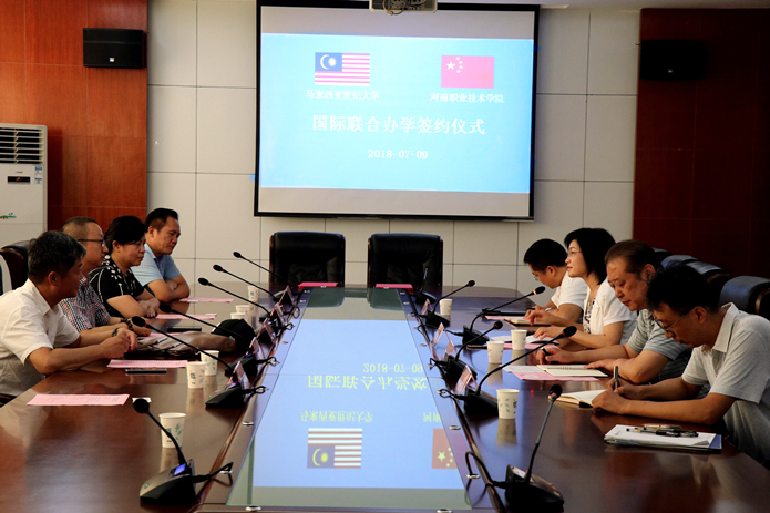 7月9日下午,马来西亚世纪大学校董,世纪大学中国发展总部负责人王强一行6人到访学校,就国际联合办学合作与我校签订合作意向书。学校校长李桂贞、副校长王皓出席了签约仪式,合作交流处相关负责人也参加了签约仪式。