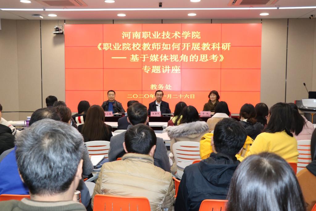 11月26日下午,我校在明知楼举行“职业院校教师如何开展教科研—基于媒体视角的思考”专题讲座。浙江永嘉学院副院长、苏州工业园区职业技术学院党委副书记王寿斌教授应邀来校作专题讲座。副院长肖珑、各教学单位及相关职能部门共70余人参加了报告会。