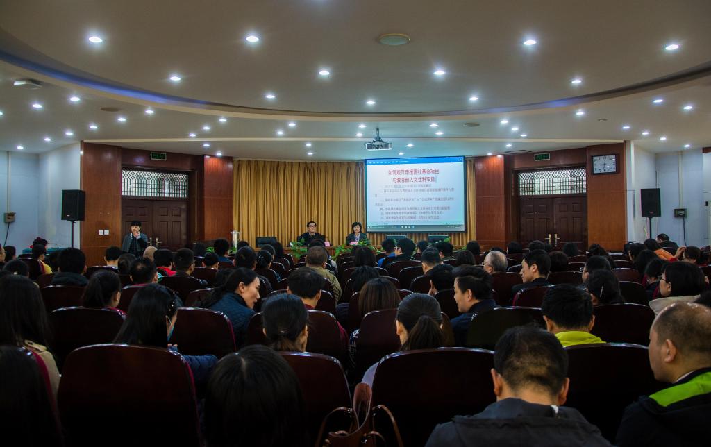 讲座上,陈玉仑教授根据多年分管中央国家机关在京各单位国家社科基金项目申报管理及组织评审工作的经验,结合高校实际和国家社科基金项目近年来申报情况,详细解读了2017年国家社科基金年度项目立项情况、实施过程、评审关注点,以及国家社科基金项目和教育部人文社科项目设置申报规律、条件、要求和重要信息提要。结合已成功申报项目的范例,他详细阐述了国家社科基金项目分类、申报人员条件、申报要点、《申请书》填写范式、《活页》填写范式、如何选题、如何提炼选题、如何论证以及申报其他注意事项等内容。在长达近7个小时的讲座中,陈玉仑教授的讲解厘清了教师们课题申报的模糊认识,解决了教师们申报书填写过程中存在的实际问题,增强了老师们申报国家社科基金项目的信心。