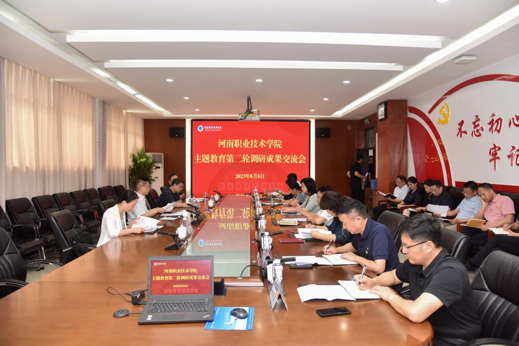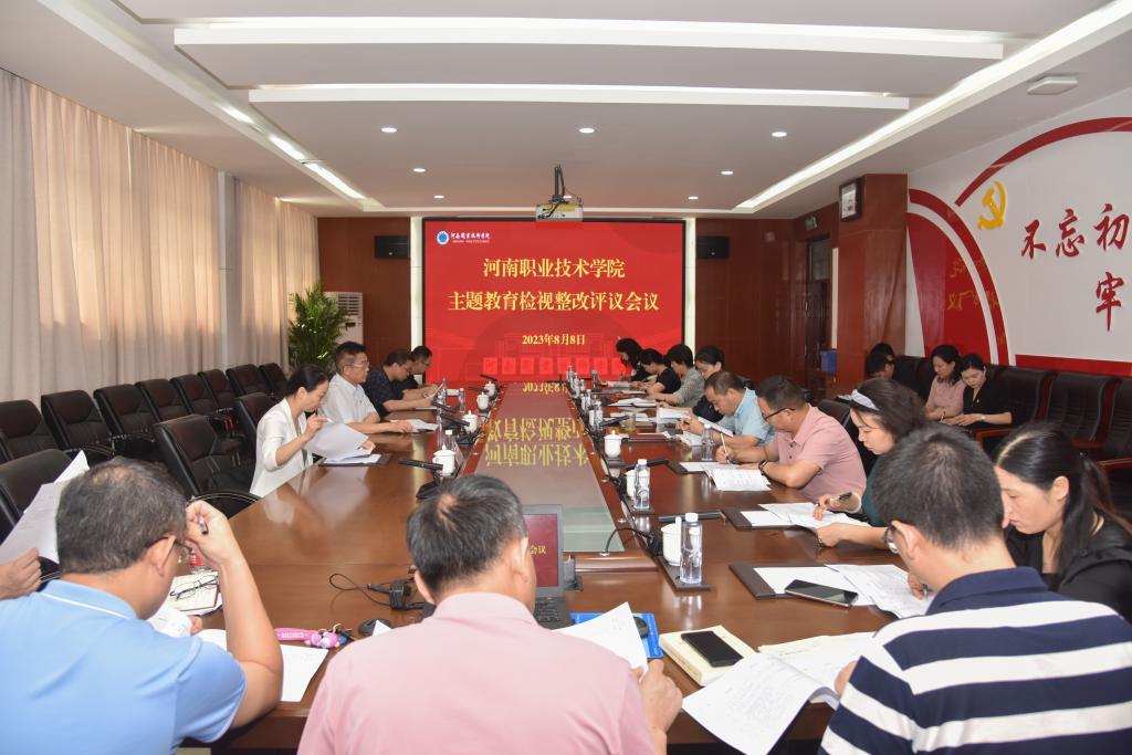 8月8日下午,河南职院召开主题教育检视整改评议暨第二轮调研成果交流会。委厅主题教育第四巡回指导组组长刘卫锋、副组长曹相智等到会指导。校领导班子成员及相关职能部门、二级院部负责人,师生代表、服务对象代表参会。校党委书记李桂贞主持会议。