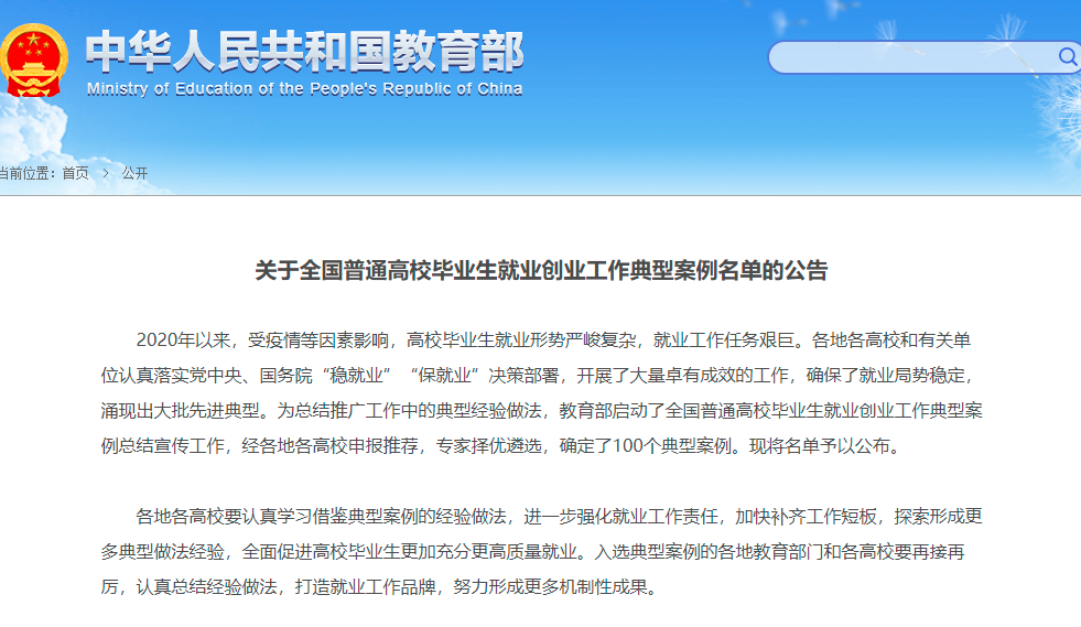 我校入选教育部全国普通高校毕业生就业创业工作100个典型案例...